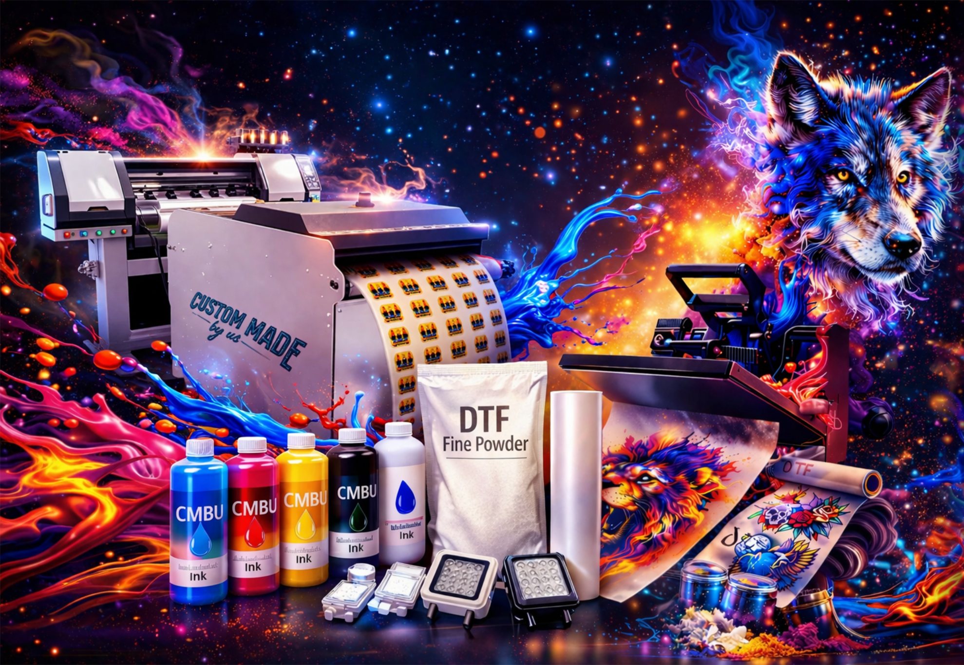 We don’t just provide high-quality DTF transfers—we supply the ink, powder, and film you need to produce them yourself. Everything is built for consistency, performance, and results you can trust.