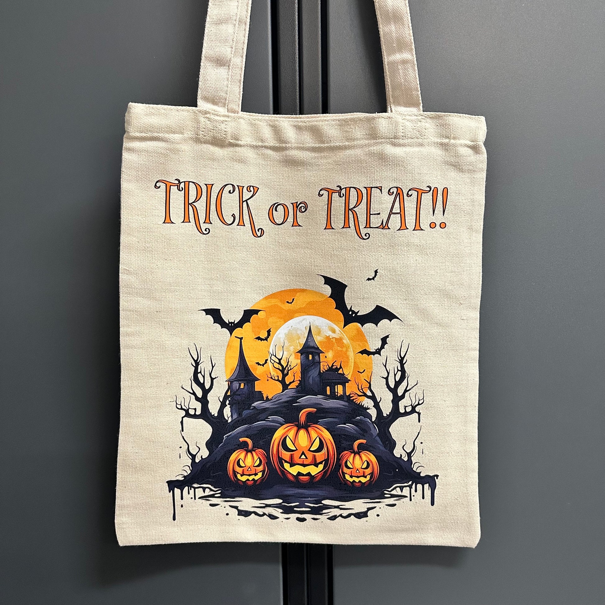 This 13" x 15" x .5" tote bag is the perfect way to showcase your festive spirit! Featuring a haunted house and pumpkins, this bag is sure to bring some spooky cheer to your trick or treating experience. Fun and lightweight, this tote will have you ready for any type of Halloween fun!