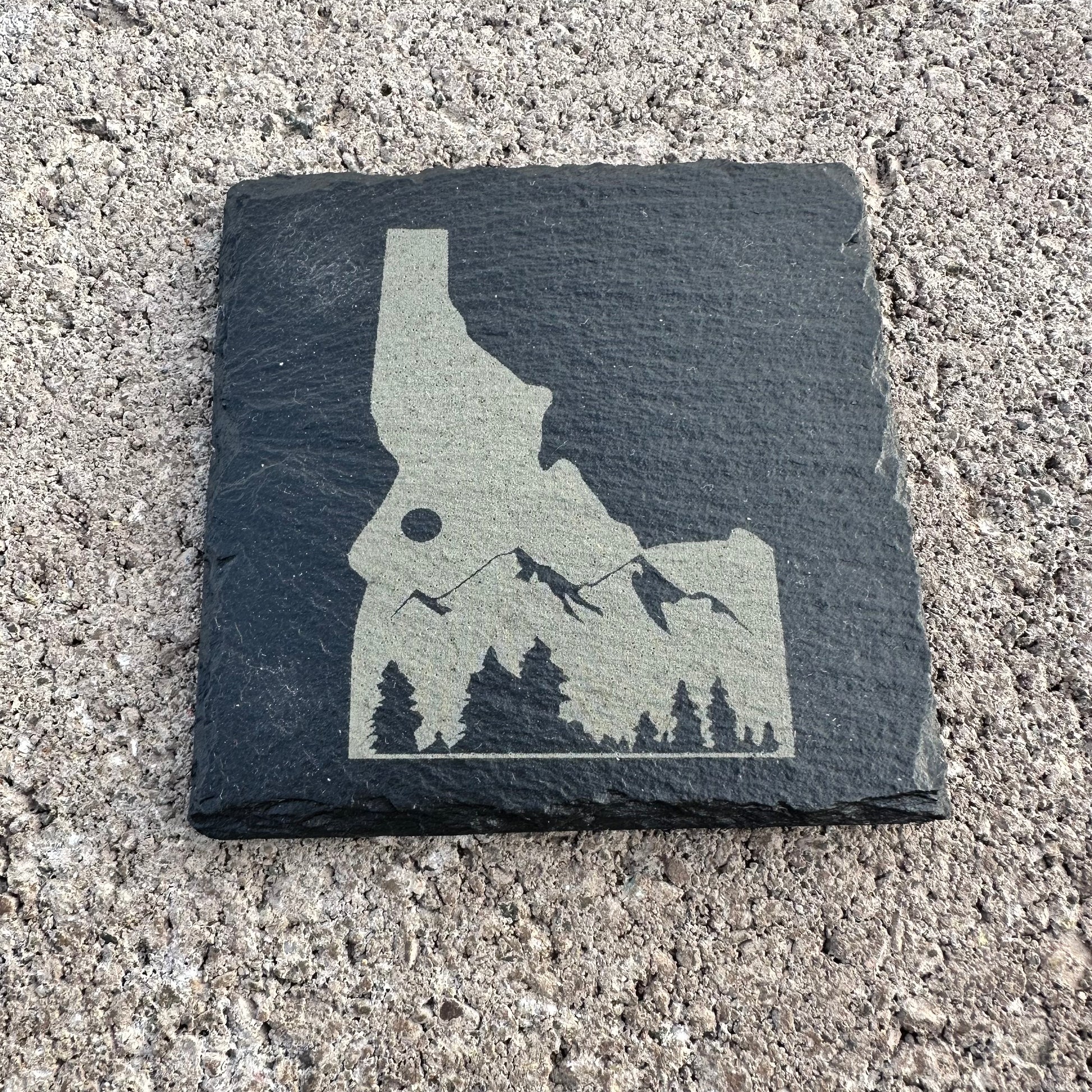 4" x 4" - Idaho State with Mountains - Slate Drink Coaster with Anti-scratch Bottom