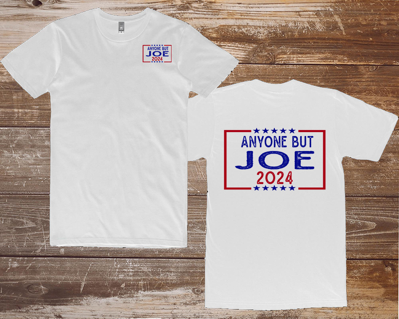 Show your support for the 2024 election race with this "Anyone But Joe" T-shirt. Made from lightweight cotton and designed with a comfortable fit, this shirt is perfect for rallies and other political events.